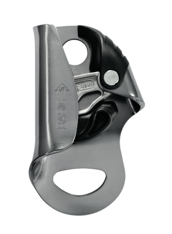 The BASIC rope clamp is very compact, making it easy to grip. The wide lower hole allows lanyard and foot loop carabiners to be easily connected.