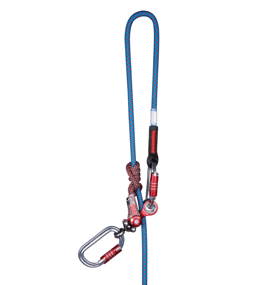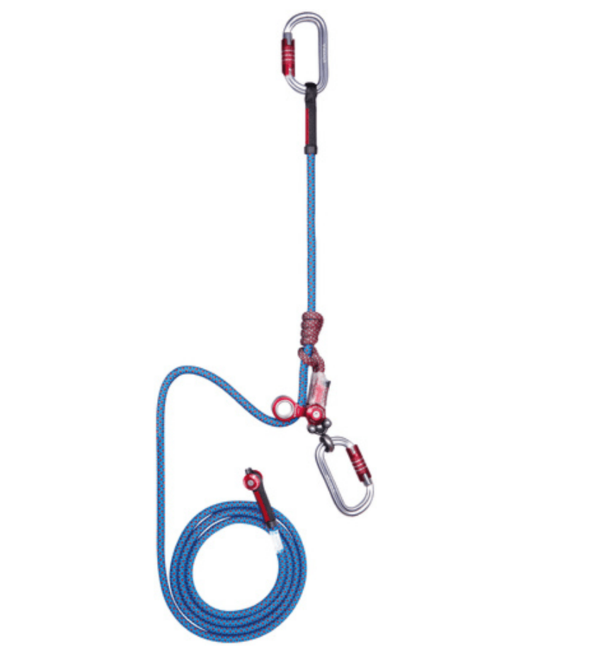 The retrieving pulley features a minimalist design and is equipped with a built-in secondary attachment point. Soft 8 mm polyester-aramid prusik integrates with the rope for smooth, precise, and secure length adjustment. Pre-assembled with a Michoacan hitch, also certified with the Catalyst and Distel for the best possibility of customization. The Iridium 11 mm Heatcore polyamide rope with exclusive CRT (Compact Rope Termination) loops delivers long-lasting ease of handling, durability and robustness thanks to the Heatcore technology that joins the sheath and core. High visibility colors.