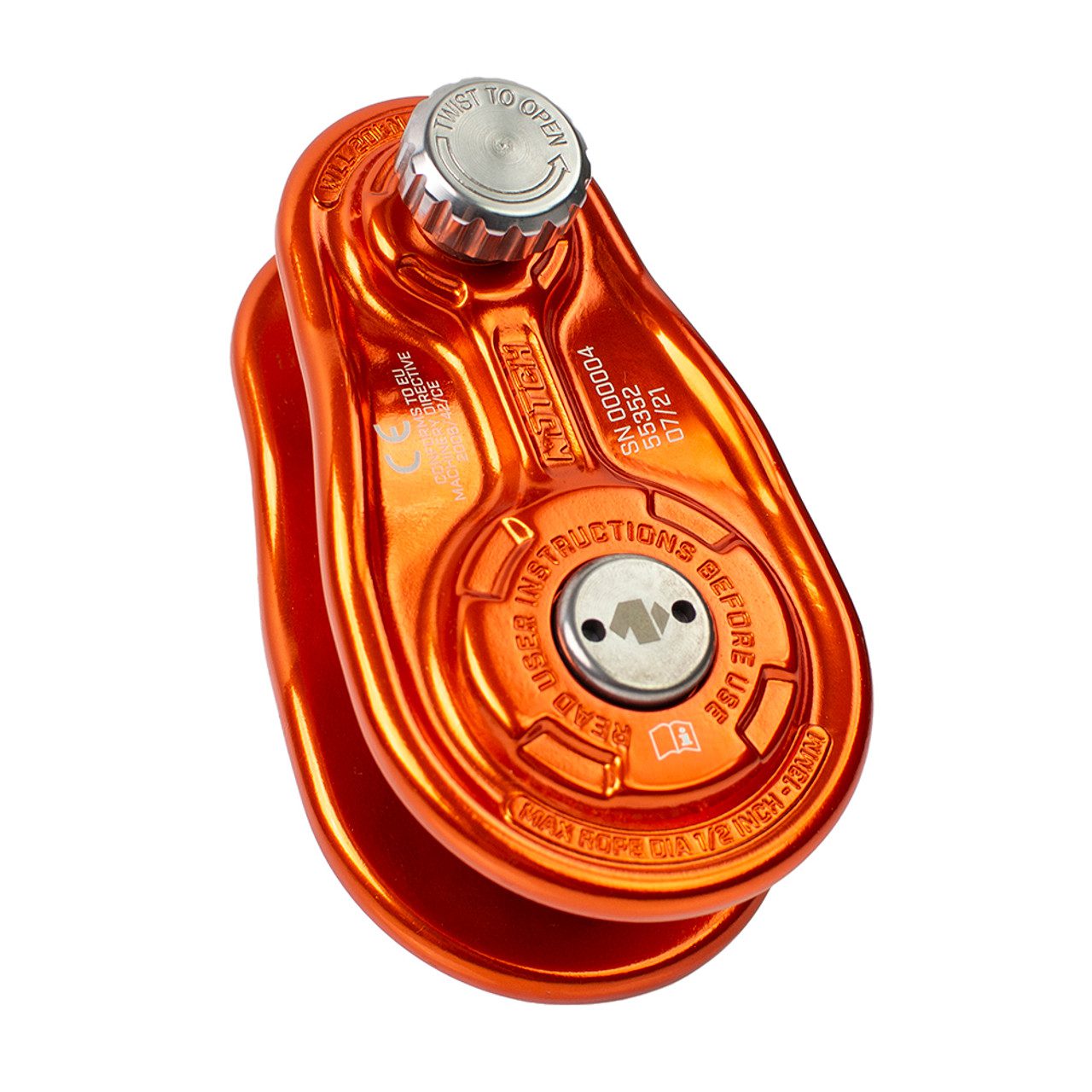 – Wide, concave upper sheave accepts 5/8” anchor slings