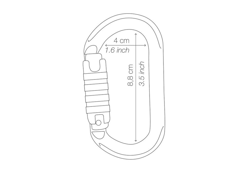 – SCREW-LOCK: the manual screw-lock with red band provides a visual warning when the carabiner is unlocked