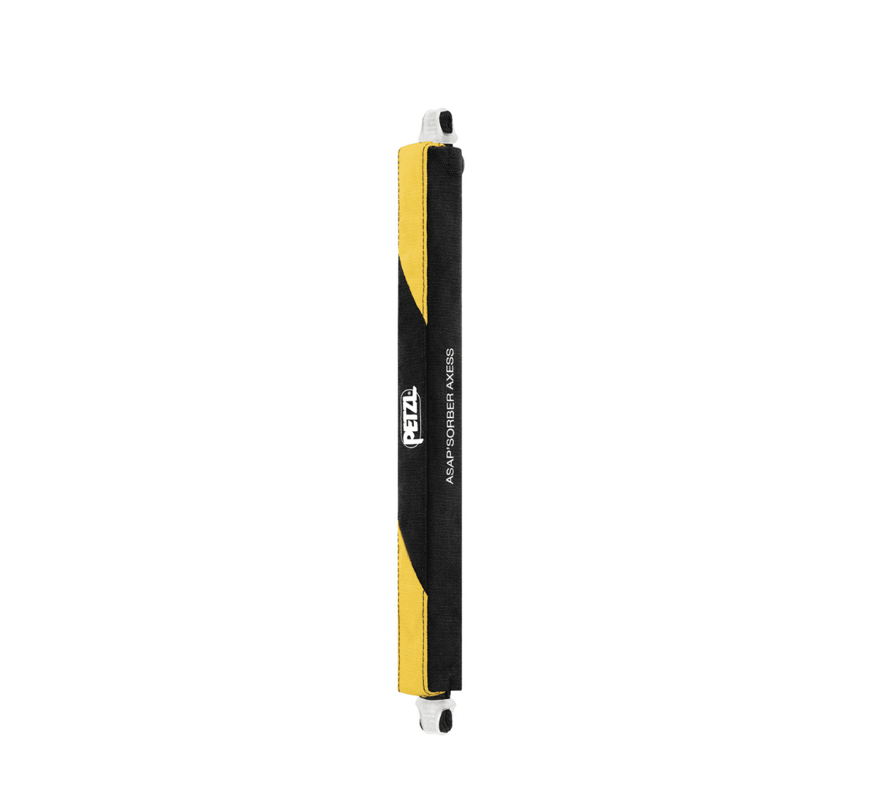 -(1) ASAP’ SORBER AXESS- Energy absorber. It allows user to work at a distance from the rope, in order to protect it during certain work phases. Equipped with tear-webbing inside a pouch that opens on each end, the absorber is protected from abrasion, while allowing for regular inspection. In can be used in two-person rescue situations for a maximum load of 250 kg.