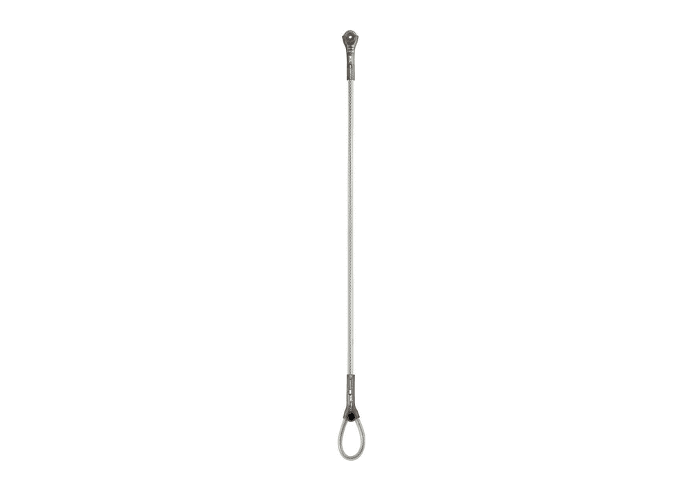 WIRE STROP is an anchor strap made of 6.5 mm diameter galvanized steel with two terminations of different sizes. It offers several configurations for setting up an anchor: directly to an anchor point or around a suitable structure. The plastic sleeve helps keep the connector in position and facilitates clipping. Length 100 cm.